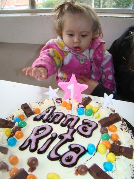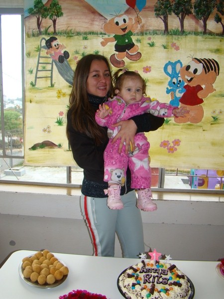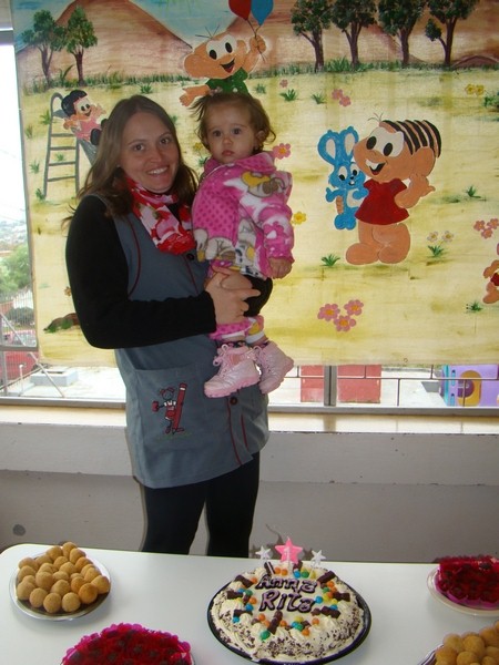 A lindinha da foto é a Anna Rita de Oliveira Zimmerman, comemorando na sexta-feira (17/05) o seu primeiro aniversário que aconteceu dia 16/05, junto ao carinho dos coleguinhas da Casa de Recreação Tia Mônica e a mamãe Adeline Martins de Oliveira.